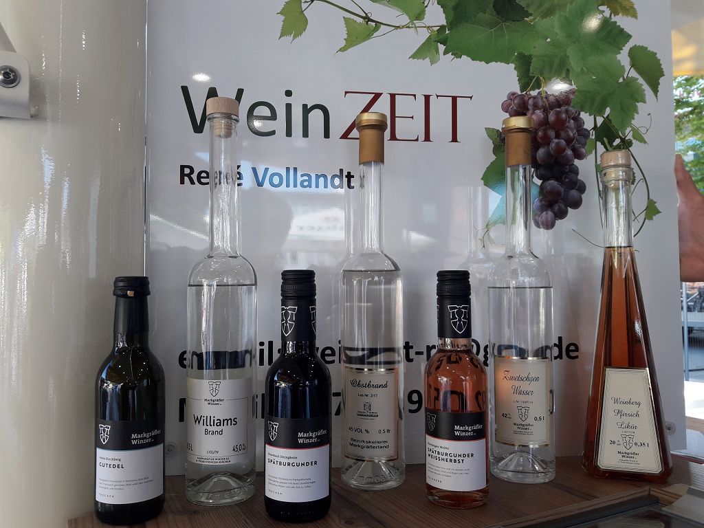 Hier eine kleine Auswahl: Gutedel trocken oder feinherb, Müller-Thurgau trocken oder feinherb, Weißburgunder trocken oder feinherb, Grauburgunder trocken, Chardonnay trocken, Riesling trocken, Auxerrois trocken, Silvaner trocken, Scheurebe trocken oder lieblich, Rosé trocken, Spätburgunder Weißherbst feinherb, Ruländer lieblich, Gewürztraminer lieblich, Muskateller QbA trocken, Spätburgunder Rotwein trocken oder feinherb, Cabernet Sauvignon trocken, Merlot trocken. Alle Artikel im Onlineshop -->>